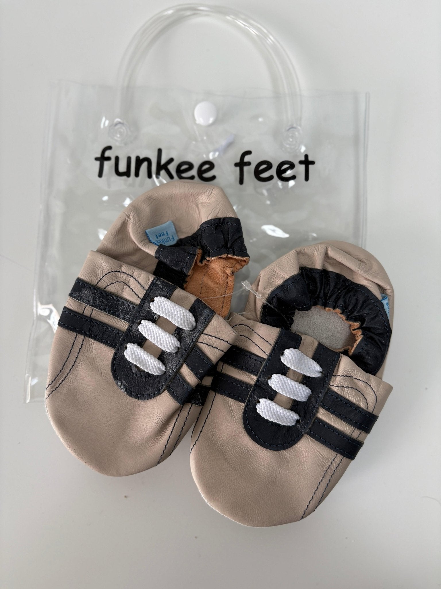 Introducing Funkee Feet soft leather baby shoes, made for newborns up to 24 months.