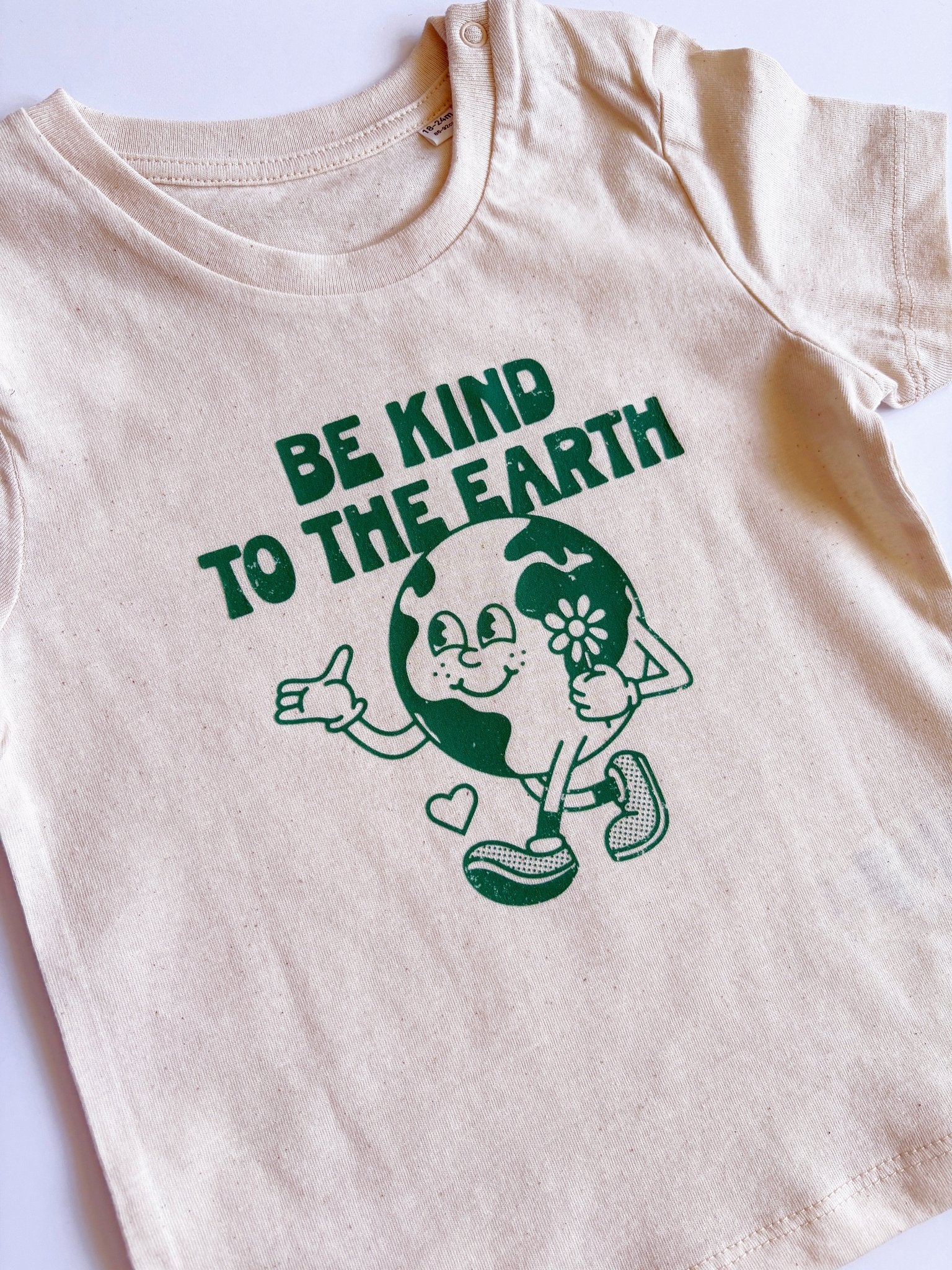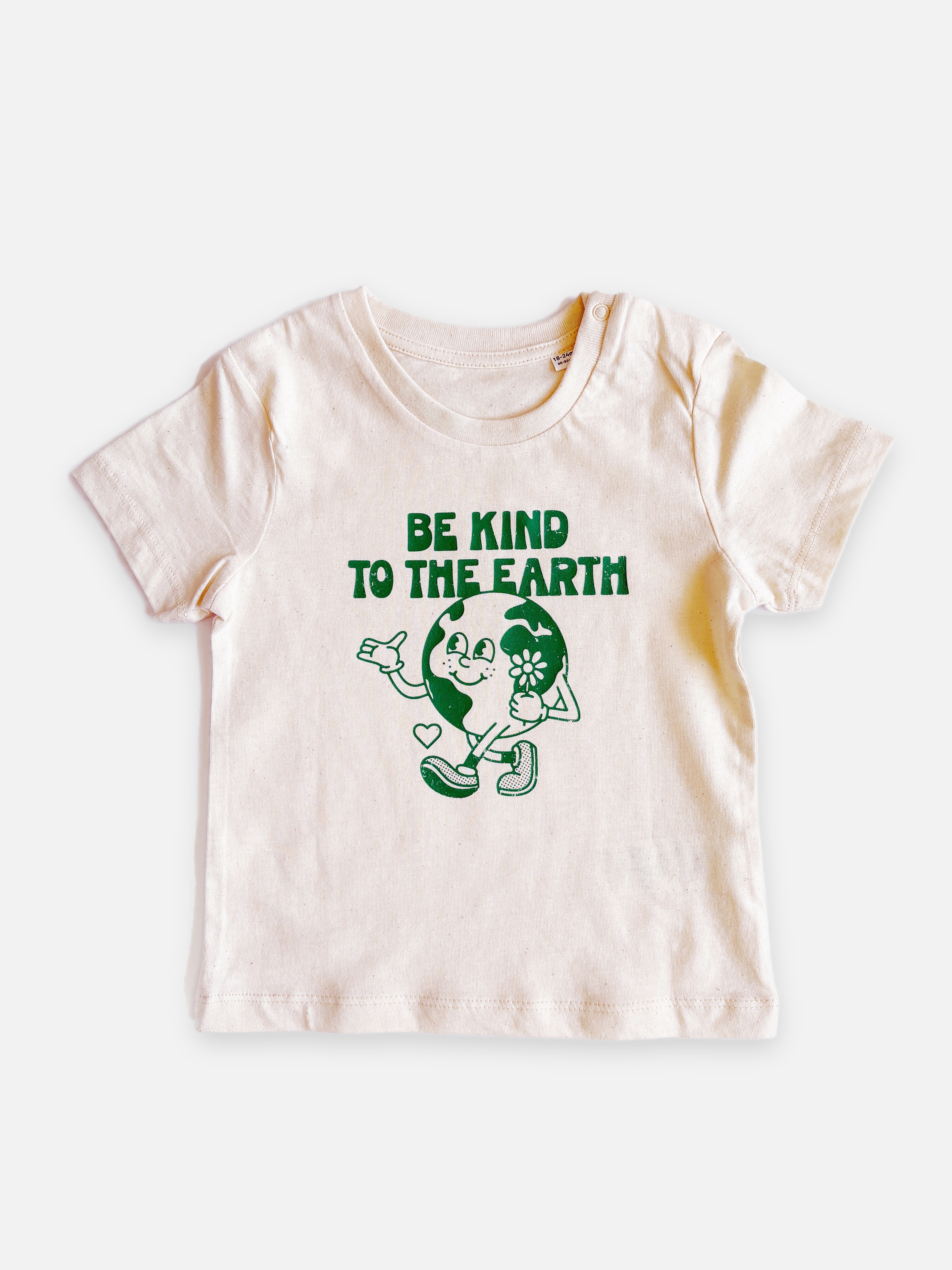 A t-shirt with a message that matters. The "Be Kind to the Earth" Printed T-Shirt is made from 100% organic cotton in a natural raw shade, free from dyes for a beautifully understated look. Ethically produced by Stanley/Stella and hand-printed by Ali in our Letchworth shop, this soft and breathable tee is perfect for little eco-warriors. Wear it with pride and join the movement for a more sustainable future.