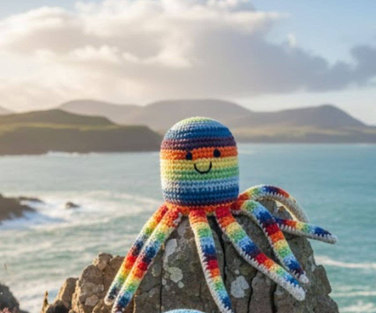 Fair Trade Crochet Bright Octopus Baby Rattle Organic Cotton