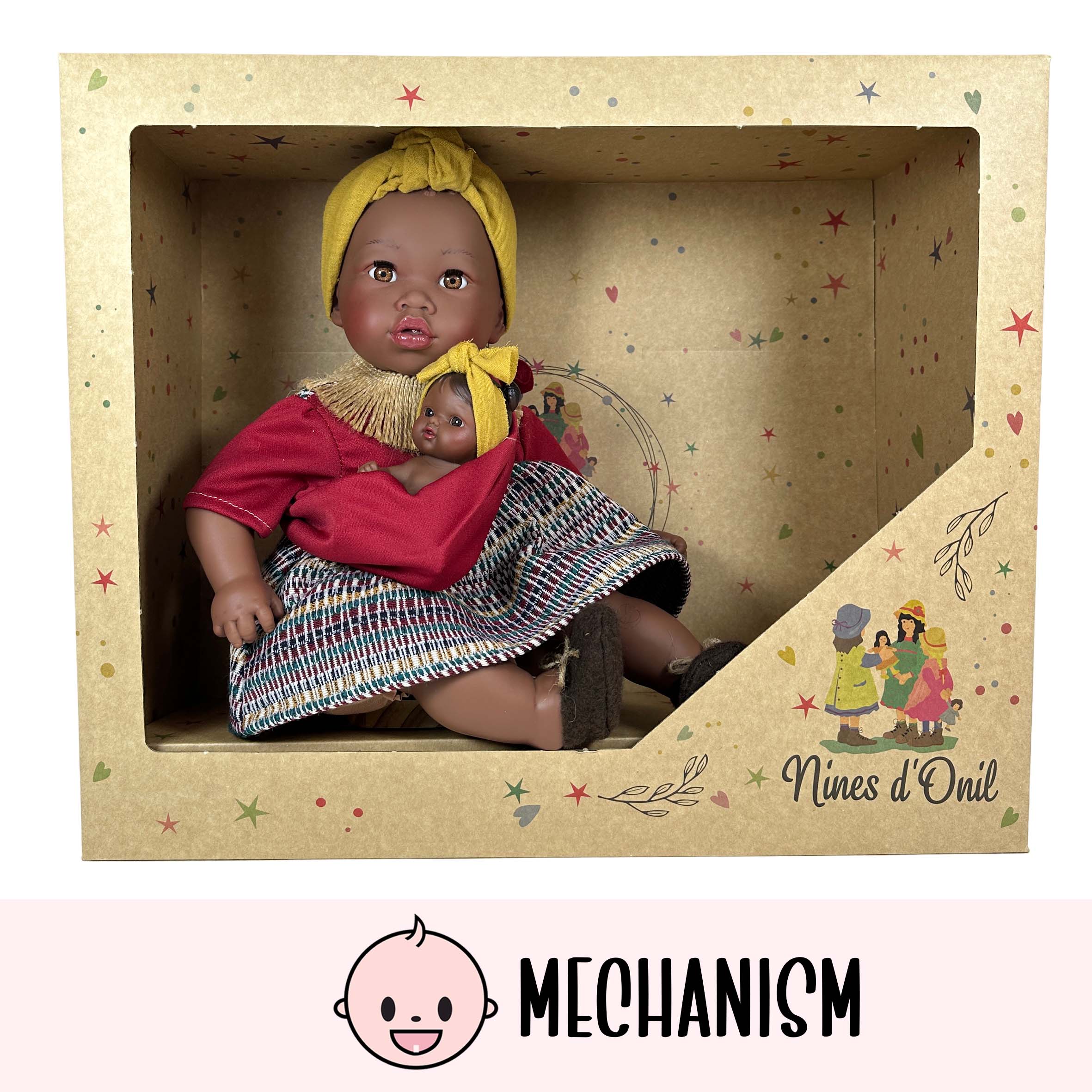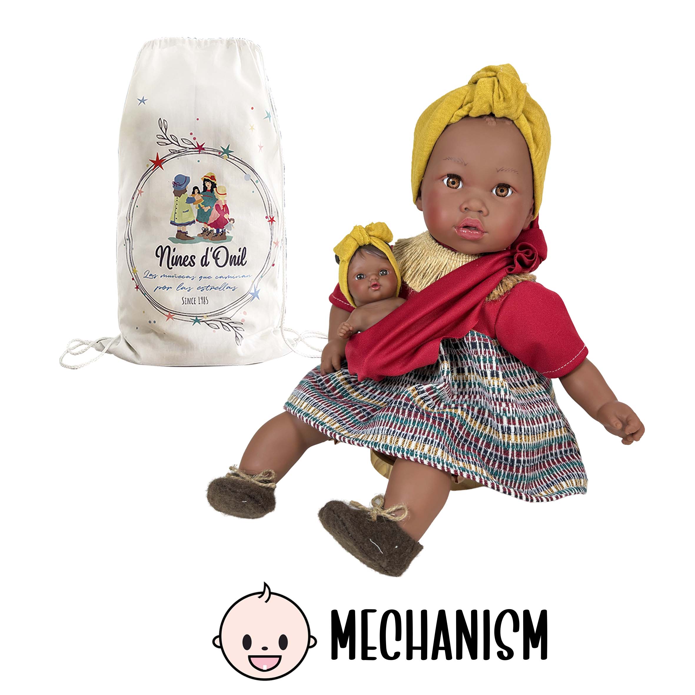 Alika comes with her baby, complete with realistic eyes, a cosy baby carrier scarf, and shoes—perfect for encouraging caring, hands-on play. This doll is part of a collection that embraces inclusivity as a fundamental value, promoting integration and teaching children about the rich diversity of cultures around the world.