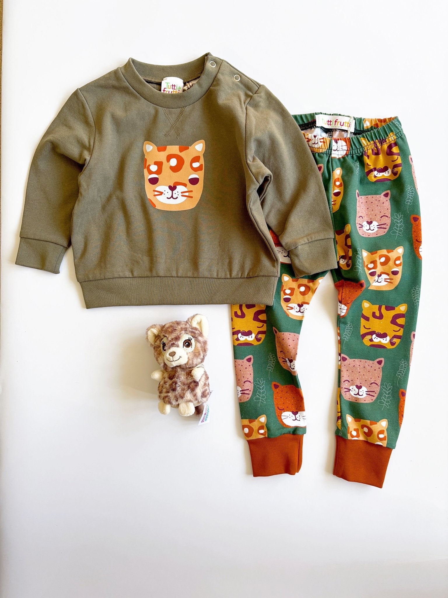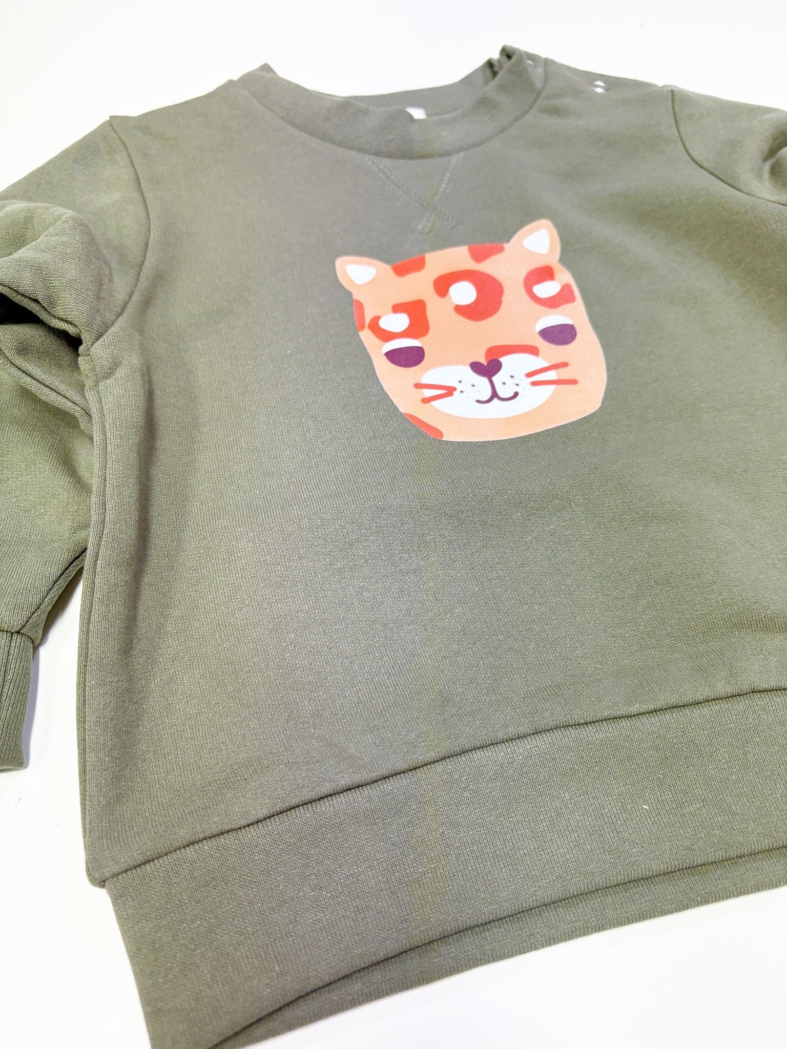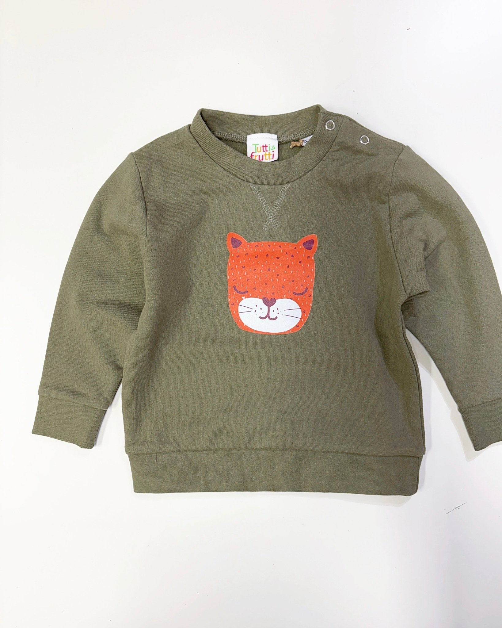 Our Big Cat Printed Sweatshirt is the perfect combination of comfort, style, and sustainability. Crafted from a blend of regenerated cotton and recycled polyester, this sweatshirt helps give new life to old materials while keeping your little one snug and warm. Soft yet durable, it's perfect for layering over tees or under coats throughout the year, offering warmth without the bulk.