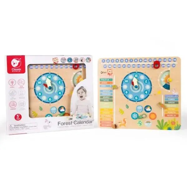 The Classic World Wooden Learning Calendar is a bright, engaging way to help children explore the world around them. With its colourful illustrations and friendly characters, it instantly captures little ones’ attention. Kids can move the sliders, turn the adjustable clock, set the date, choose the month, and pick the weather — all through simple, hands-on interactions. It’s a wonderful introduction to daily routines, early numeracy, and understanding how time and seasons change.