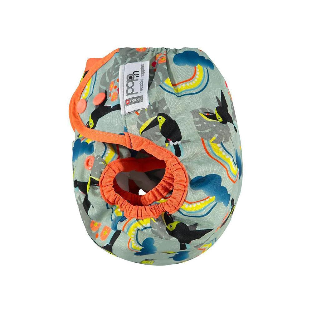 The Close Pop-In Waterproof Nappy Covers are ingeniously designed with a double gusset for reusability, crafted to effortlessly fit over any fitted or pre-flat nappy. These wraps are unlined for easy wiping and reuse when not soiled. Their generous sizing accommodates even the bulkiest nappy systems, while the stretchy tabs ensure a secure fit with the popper fastening. Versatile for both day and night use, the double leg gusset ensures a poonami-proof experience.