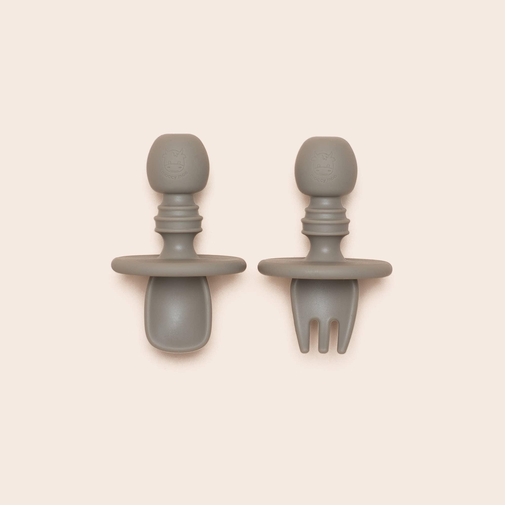 This spoon and fork utensil set is the perfect duo for babies and toddlers learning to self-feed. The round head and short handle is designed according to scientific experiments, suitable for a perfect baby grip with a choke barrier integrated in the design.