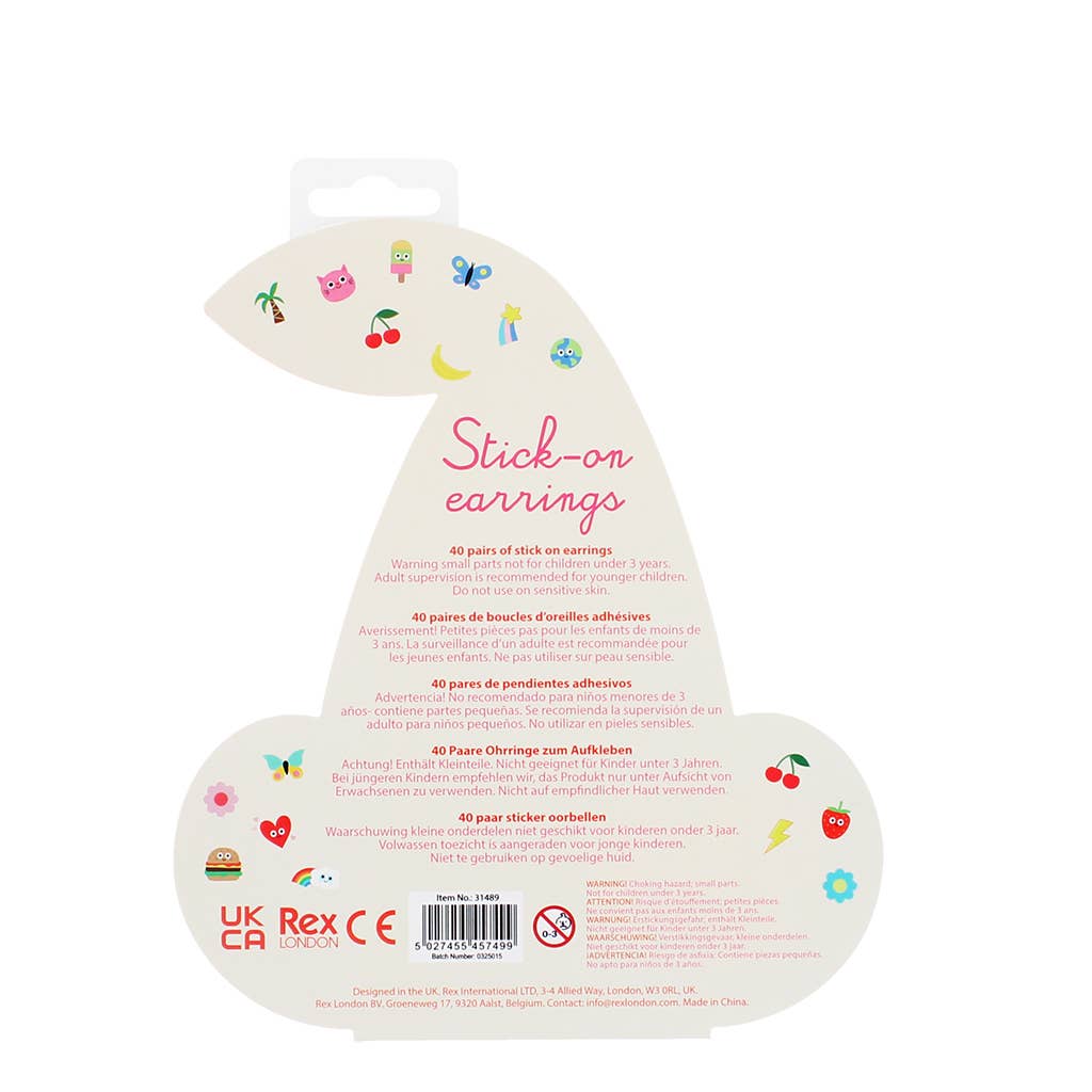 This sweet set of 40 stick-on earrings for children is packed with colour, fun, and plenty of choice. Everything comes in a cute cherry-shaped cardboard box, making it an instant hit with little ones who love to accessorise without needing pierced ears.