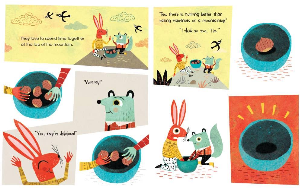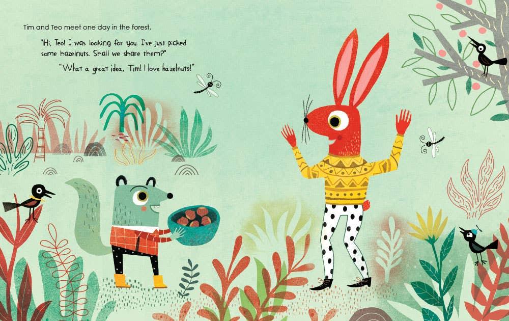 When two woodland friends have a misunderstanding over who ate the last hazelnut, they eventually find that holding a grudge is a lot less rewarding than mending their relationship. Chic illustrations and punchy text make for a relatable and humorous conflict resolution story.