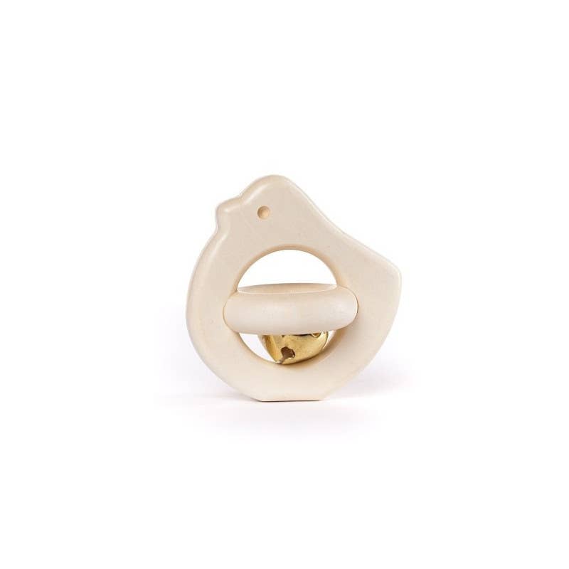 A wooden bird rattle with a gentle bell sound, designed to support early sensory development and motor skills from around 3 months. Lightweight and smooth, it’s easy for small hands to grasp and shake, helping to develop hand–eye coordination and early sound awareness through play. Made in Europe from sustainably harvested Polish wood and finished with certified, child-safe, non-toxic paints, this is a simple, durable first toy.
