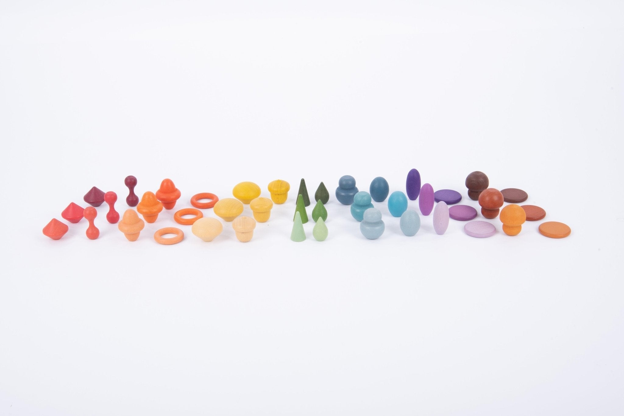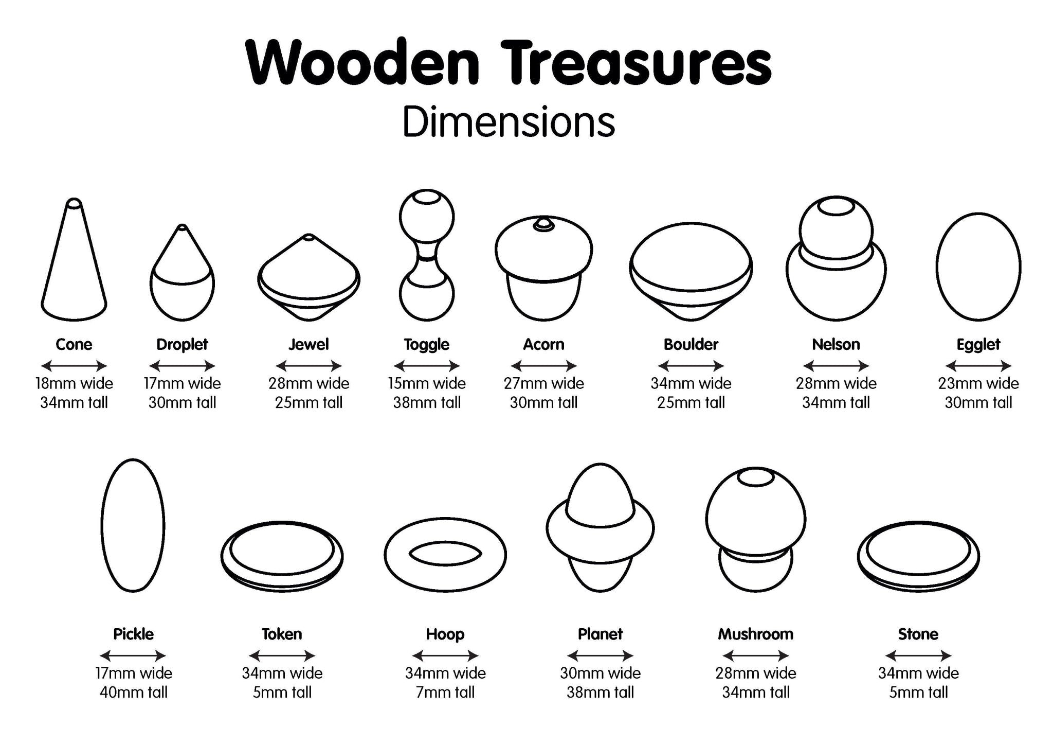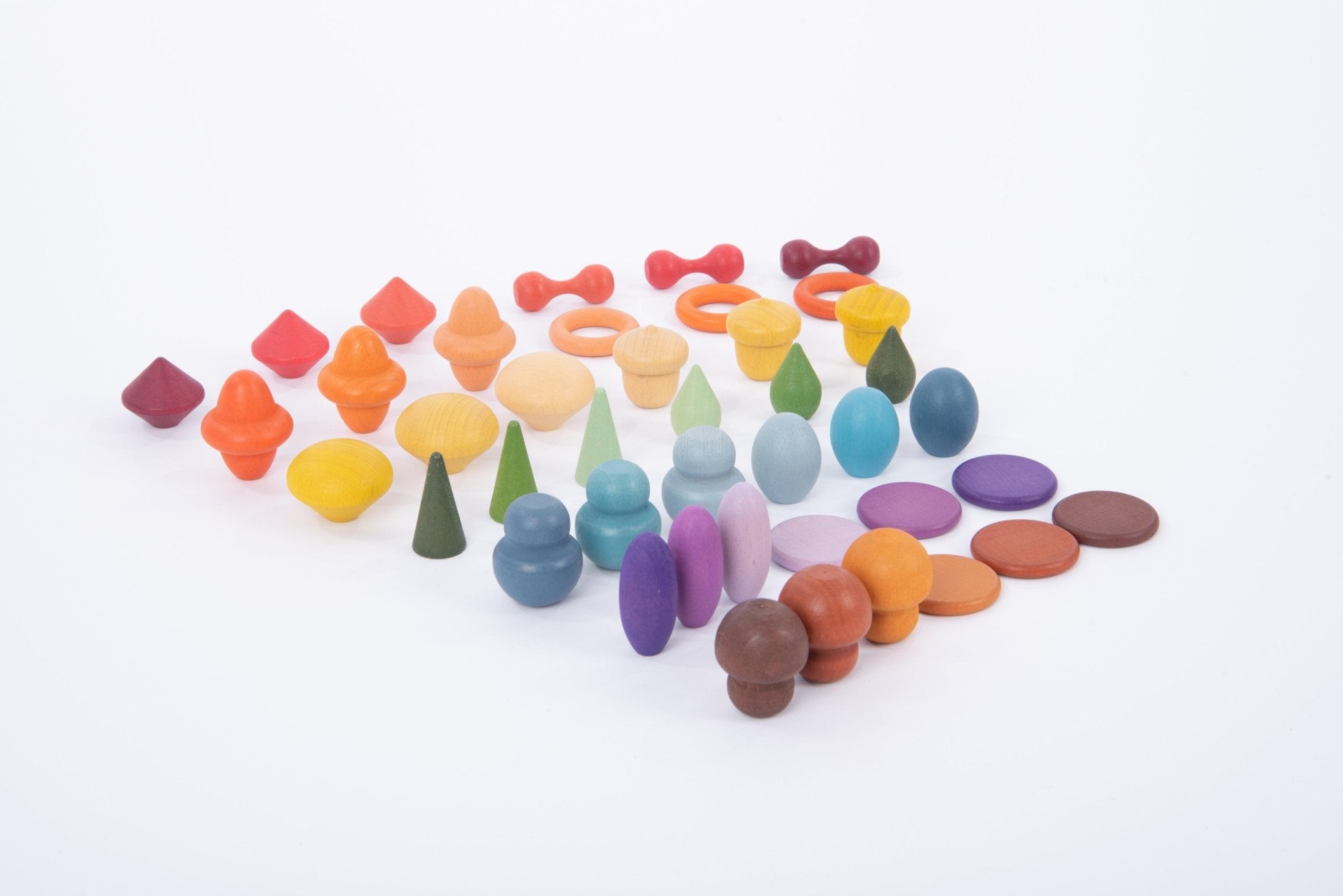 Wooden Treasures Taster Set: This set features a variety of smooth wooden shapes inspired by nature, in 7 organic colours that represent different emotions and senses.